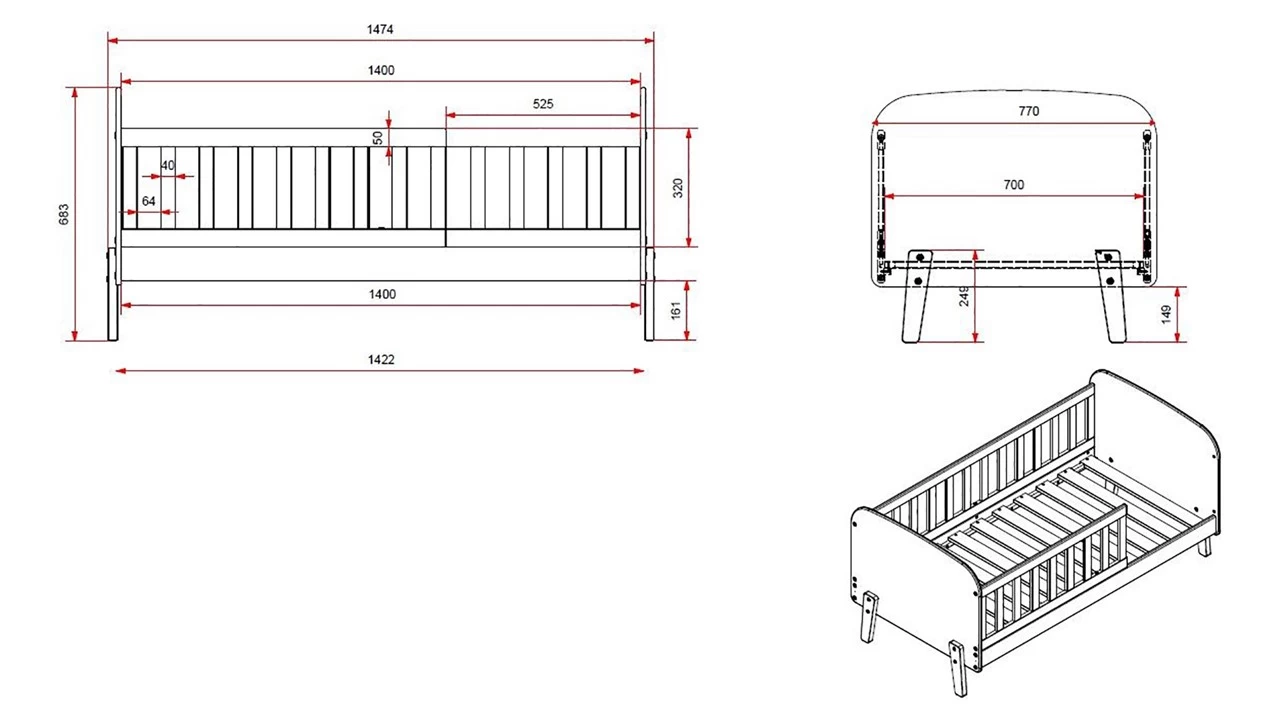 Bed Kiddy Kleuter wordt geleverd inclusief bedbodem, exclusief matras.
