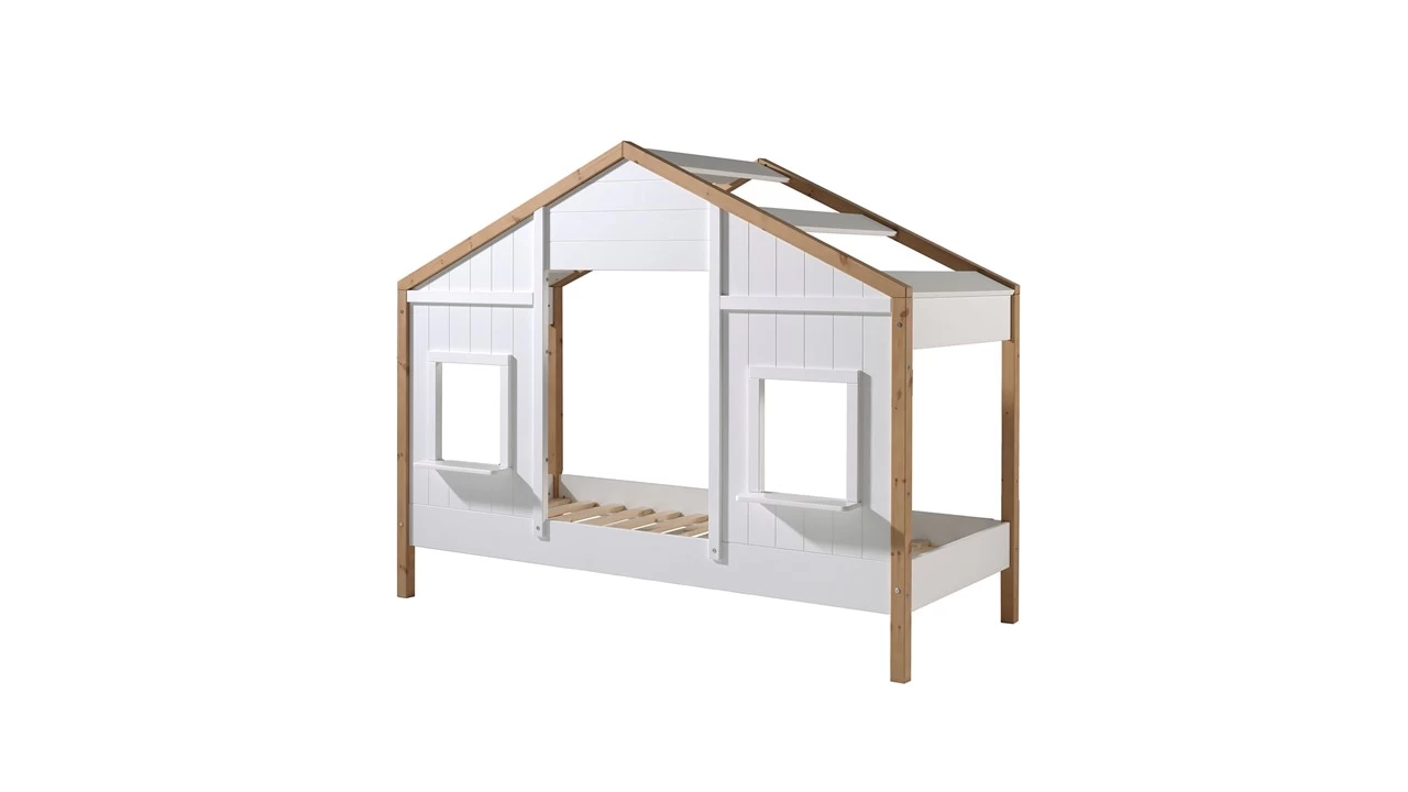 Met het HuisBed Babs 90 kies je voor een speels en fantasierijk kinderbed. Dit bed heeft een groot voorpaneel met twee raamopeningen waardoor het bed ook makkelijk gebruikt kan worden om in te spelen. Daarnaast zorgen de open zijkanten en (gedeeltelijk) open bovenkant ervoor dat het bed eenvoudig zelf aan te kleden is met bijvoorbeeld slingers, lampjes of gordijnen. Zoek je toch nét iets anders, de Vipack HuisBed Kinderkamer collectie heeft diverse verschillende huisvormige bedden.