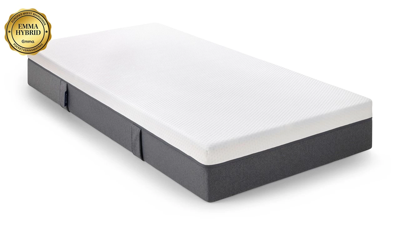 Maak kennis met het best geteste matras van Nederland: Emma Hybrid! Het Emma Hybrid Matras is als eerste uit de bus gekomen in de Consumentenbond Matrassentest 2022 met een score van 7,3! En dat is ook niet heel gek, want dit matras is ontworpen voor ultiem comfort én de levensduur is bijzonder goed. Emma Hybrid combineert pocketveren en schuim om van elke nachtrust een droom te maken. Welterusten!
