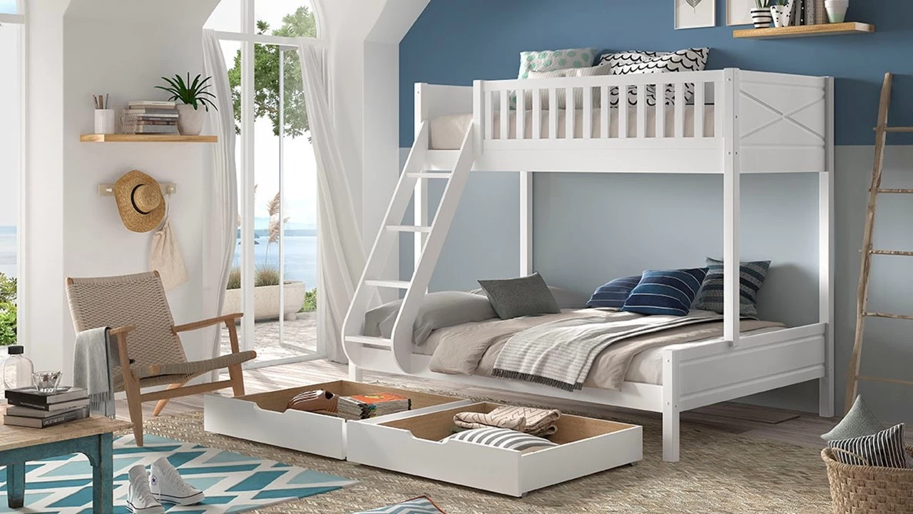 Stapelbed Scott 3-persoons wordt geleverd inclusief bedbodems, exclusief matrassen.